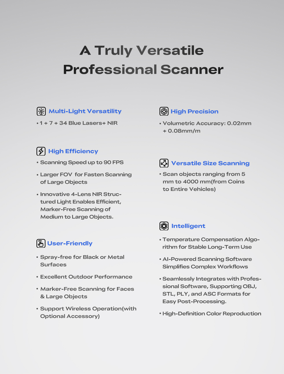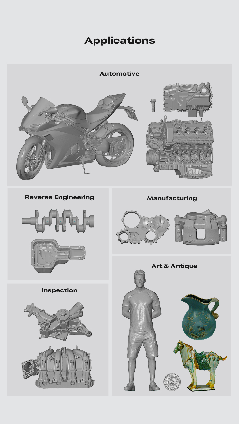 Профессиональное решение для 3D-сканирования в промышленности, дизайне, медицине и образовании. Идеален для реверс-инжиниринга, контроля качества, создания цифровых архивов и работы с объектами культурного наследия.