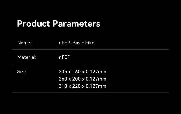 Базовая nFEP-плёнка — это специально обработанная FEP-плёнка, предназначенная для повышения эффективности и качества 3D-печати. Подходит для принтеров Halot-One Plus, Halot-Play (Sonic Mighty 4K, Mono X, Mars 4 Max)