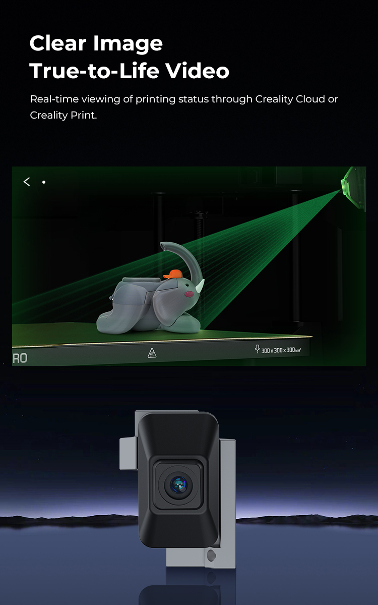 - Удаленное наблюдение: Реализована возможность просмотра статуса печати в реальном времени через приложения Creality Cloud или Creality Print.