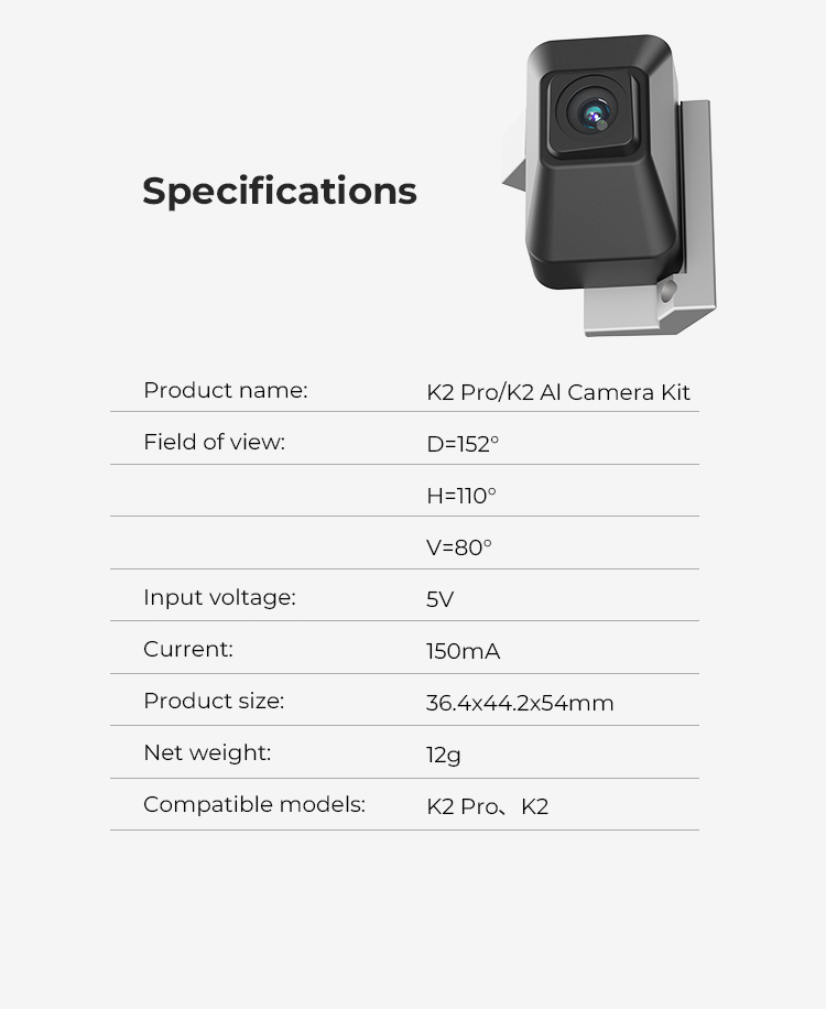 | Наименование | Камера с AI-мониторингом для K2/K2 Pro |